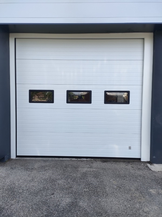 - Porte sectionnelle manuelle, motorisée ou automatisée, par commande manuelle, treuil à chaîne ou électrique